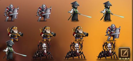 实战策略:如果对手是战士或者刺客这种血量比较高又会被反击的职业,只要把影武侍者放在中路可以反击到对方英雄的位置,然后配合暗影蜘蛛,英雄不断地给影武侍者加魅影之力和暗影之力(哪个BUFF没了补哪个)。很快场上中路的控制权就在你手里了,对方英雄的血量将被影武侍者的超高伤害慢慢磨完。其他两路用小费的火枪和步兵来防守,主攻中路。如果影武侍者被技能强秒,要及时补上另外一只影武侍者并以相同的套路快速培养起来确保对对方英雄的持续输出。如果对手是猎手或法师这种远程的职业,就针对对手强势的一路放影武侍者加蜘蛛也是相同的套路培养,将对方强势路打崩,其他两路用低费的步兵和火枪防守。