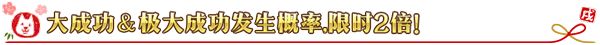 进行从者以及概念礼装的强化时,大成功(经验值2倍奖励)•极大成功(经验值3倍奖励)的发生概率限时提升为2倍。