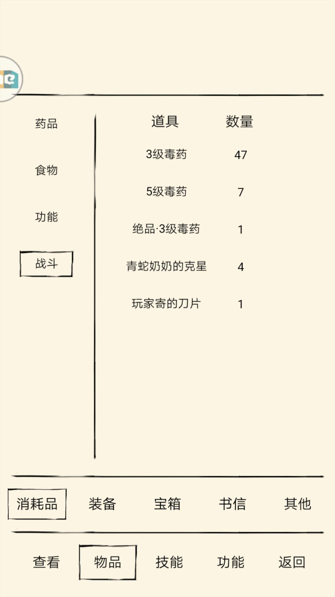 三级毒预料之外没用多少,四级毒五级毒用的挺多,零食剩4个,刀片仙酒剩一个,福地毕业喽