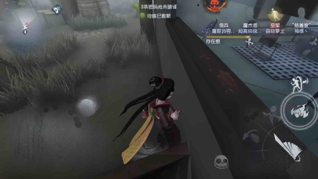 这里的操作方法就是把视角拉低,直到低头可以从窗口看到大厂房的求生者。(暗中观察)可以来一个出其不意。
