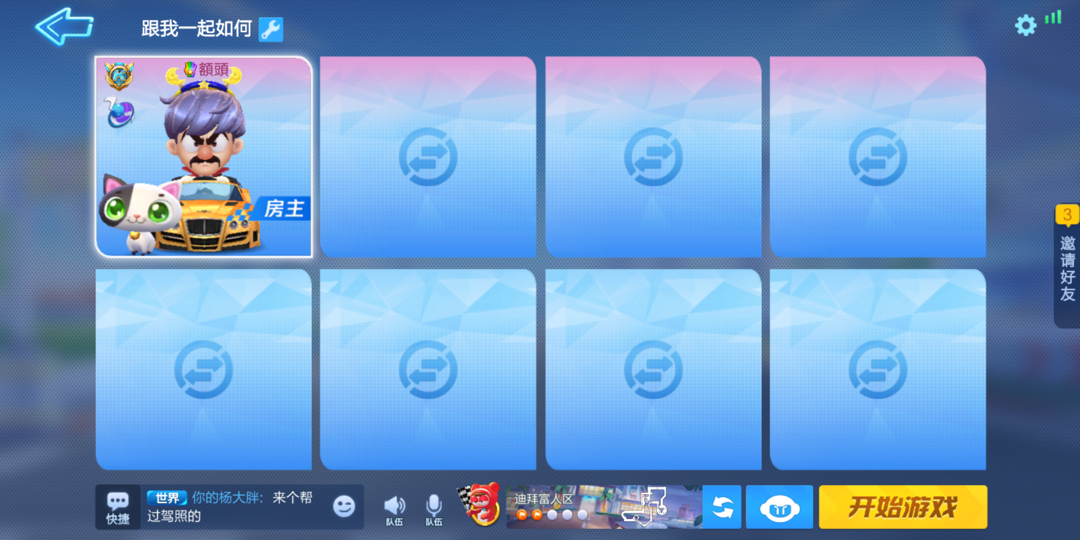 8人“个人”竞速 获得第一名6次 这个得要靠你实力了 建议你去比自身驾照低一级的房间创房/匹配