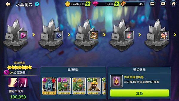 水晶洞穴,顾名思义就是产出水晶的副本,水晶是用来强化职业的材料。但其实水晶洞穴不仅仅只是产出水晶,它可以产出各种材料,通关最后一关还可以获得终极奖励——传说英雄召唤券。