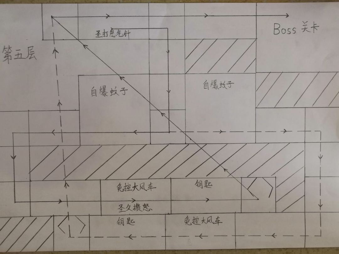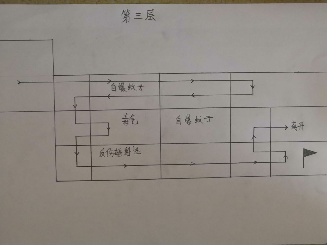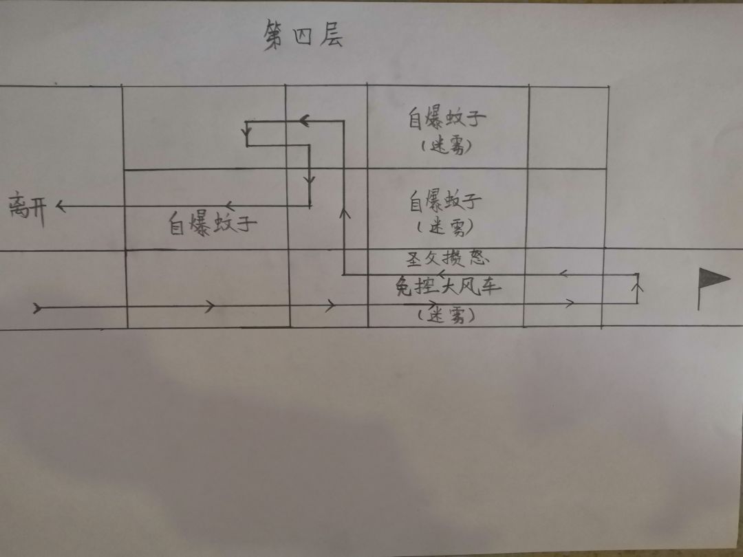 4.以后出门由楼梯向上,由中层右侧的房间拿取道具后道具离开,是关卡最中间的自爆蚊子不用引爆,减少失误概率