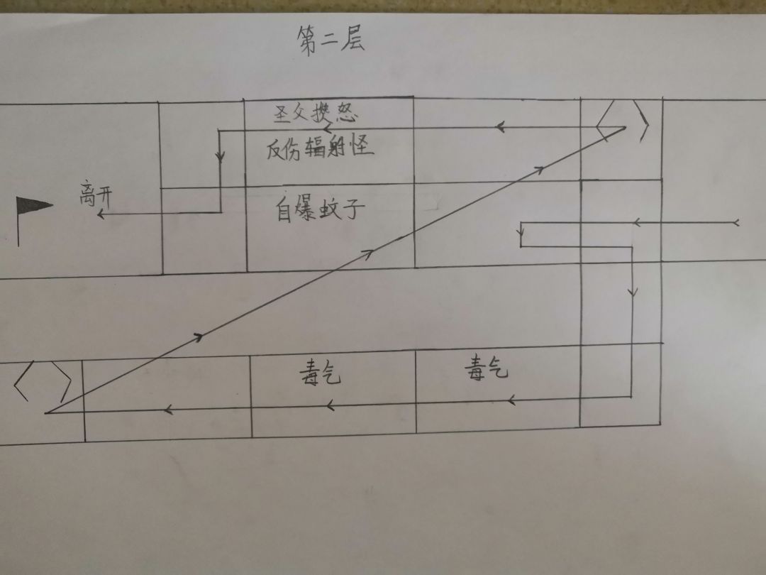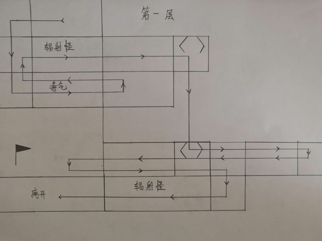 1.首先进门,下达第二层穿过毒气房间拿取道具,然后返回第一层,通过辐射怪房间到达传送点