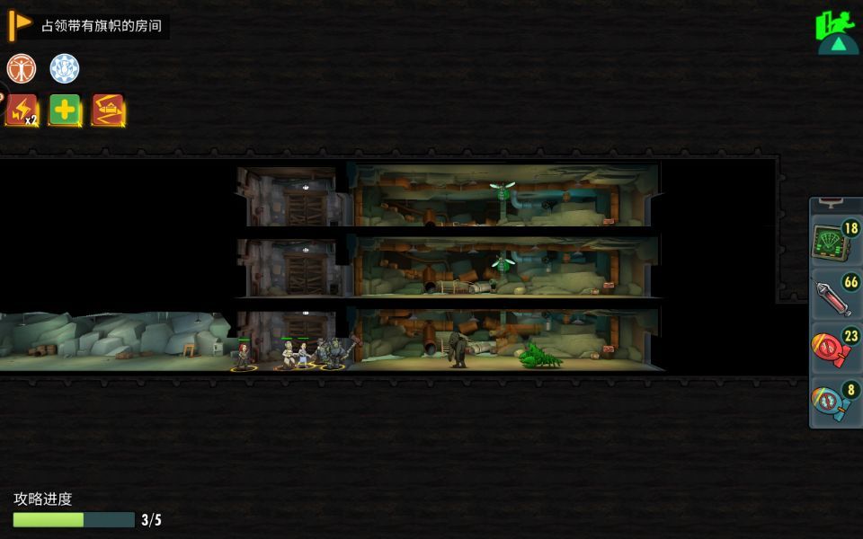 3.最底层向右通过反伤辐射怪房间,到达需要占领的房间