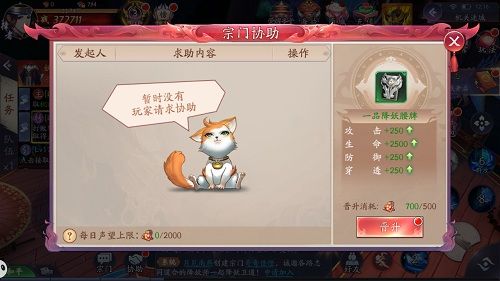 玩家每日参与协助能获得的声望有上限(上限值为2000),每日0点会重置。累积声望值可用来提升腰牌品质,增加腰牌属性。