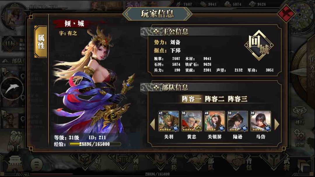2.将领,优先选武力高、统帅高的,前期推图很重要,个人喜欢骑兵主力,机动性、冲锋伤害高,还能躲过一轮弓矢,推图效果不错,推荐骑弩阵容。