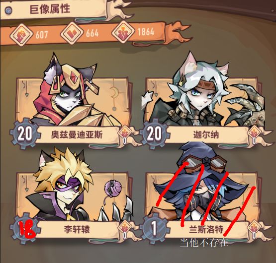基础阵容:前三只猫,等级分别是20/20/18,其中迦尔纳是关键,后面会详细解释