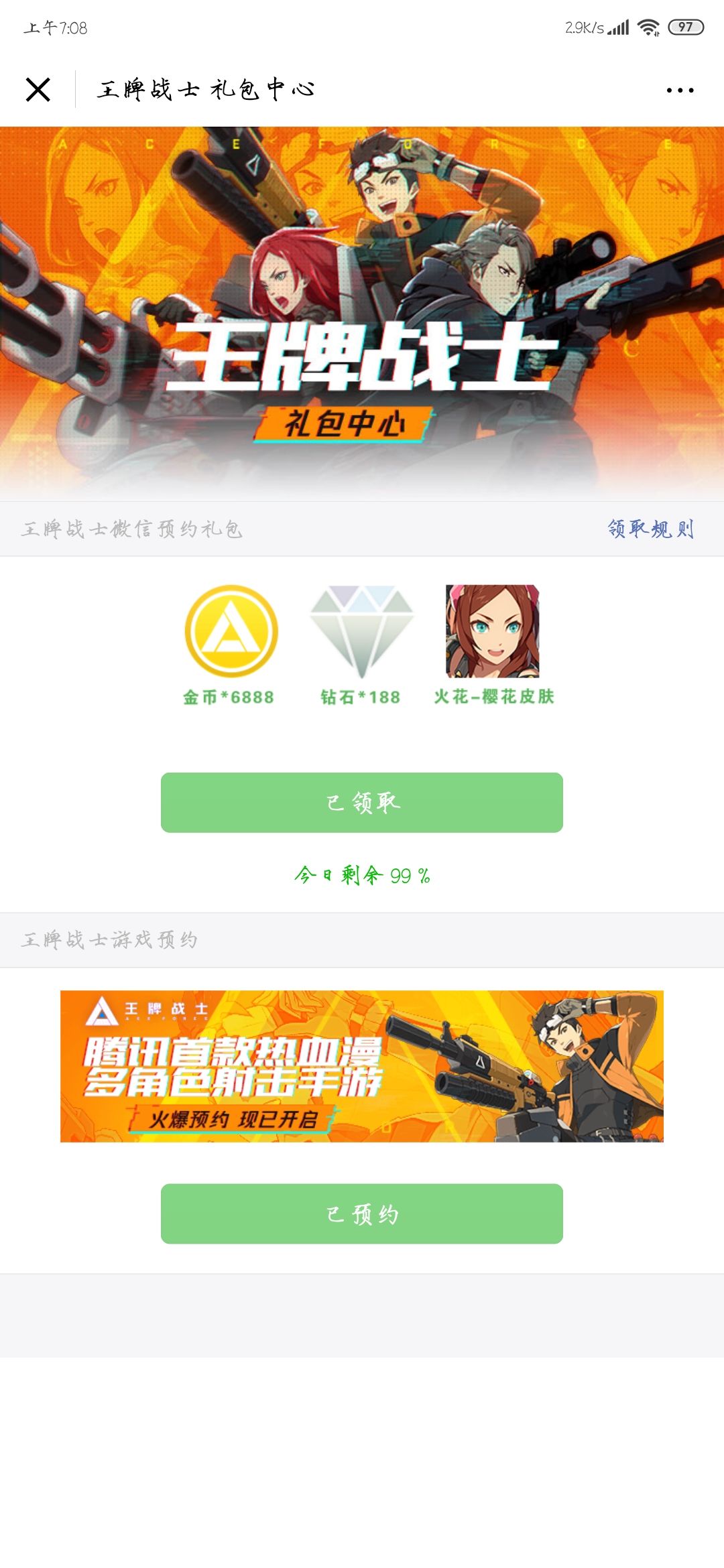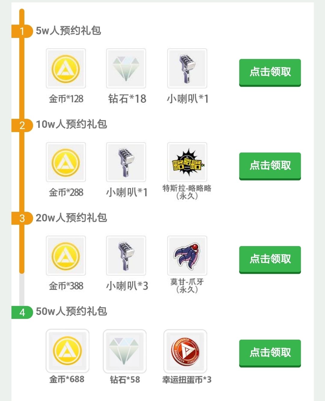 预约礼包内容:金币*6888 钻石*188 火花•樱花时装*1(已知是1星级并且不能提升,感谢评论区补充)