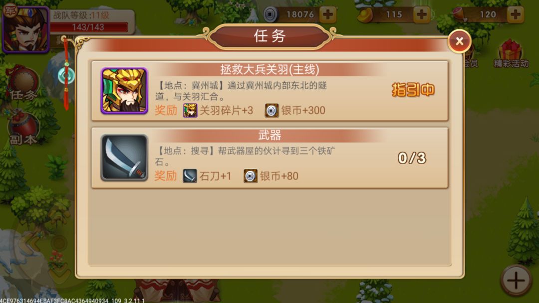 8.冀州城主线:拯救大兵关羽—奖励关羽碎片*3。
