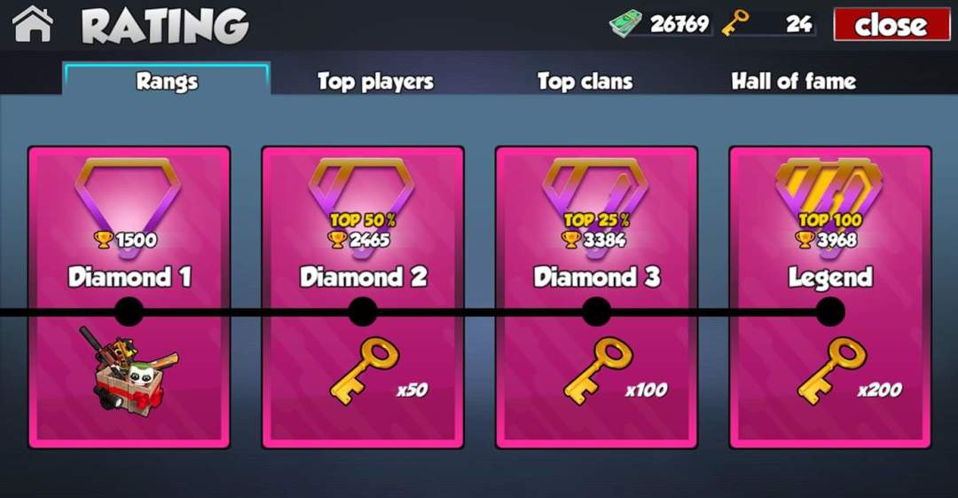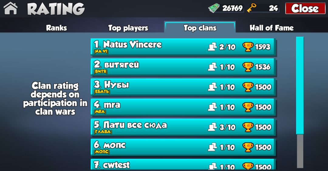 现在每个战队都有自己的等级。 最初,它总是等于1500分,并根据战队在战斗中表现出的结果而有所不同:如果一个强大的战队(高评级)赢得一个弱小的战队(低评级),那么两个氏族的评级点将发生最小的变化,因为结果是可以预测的。