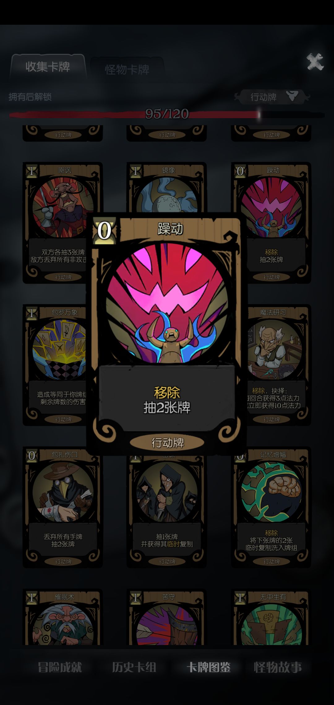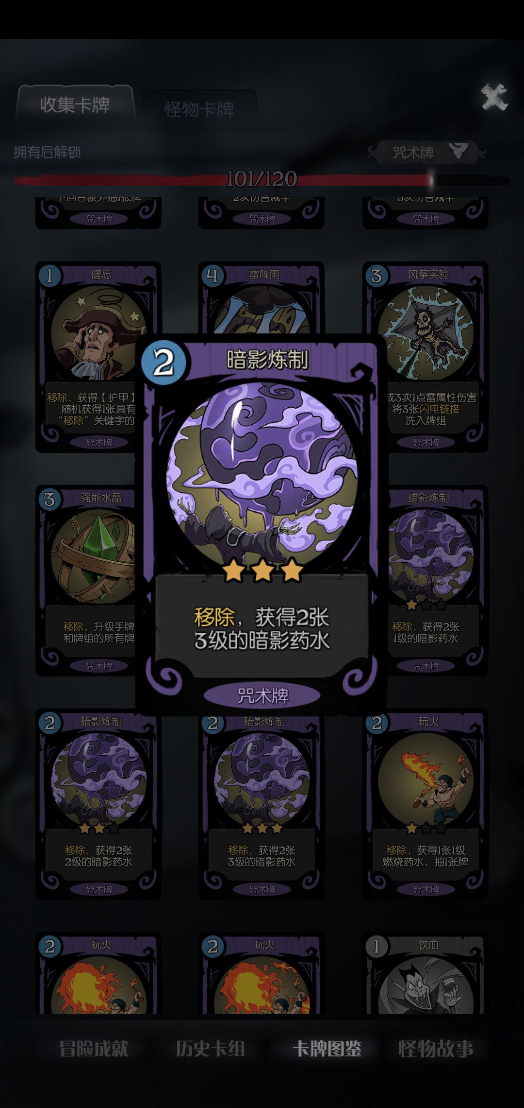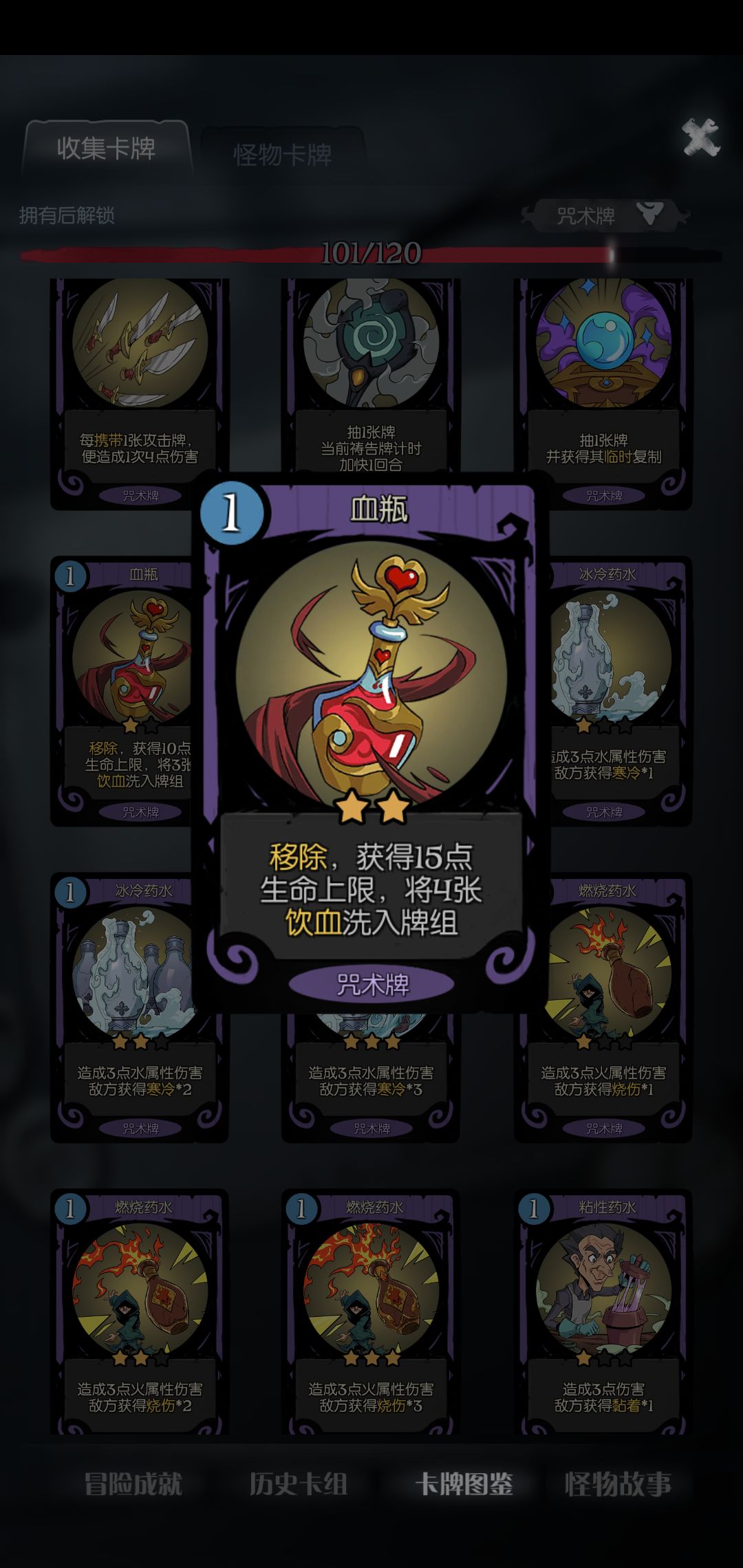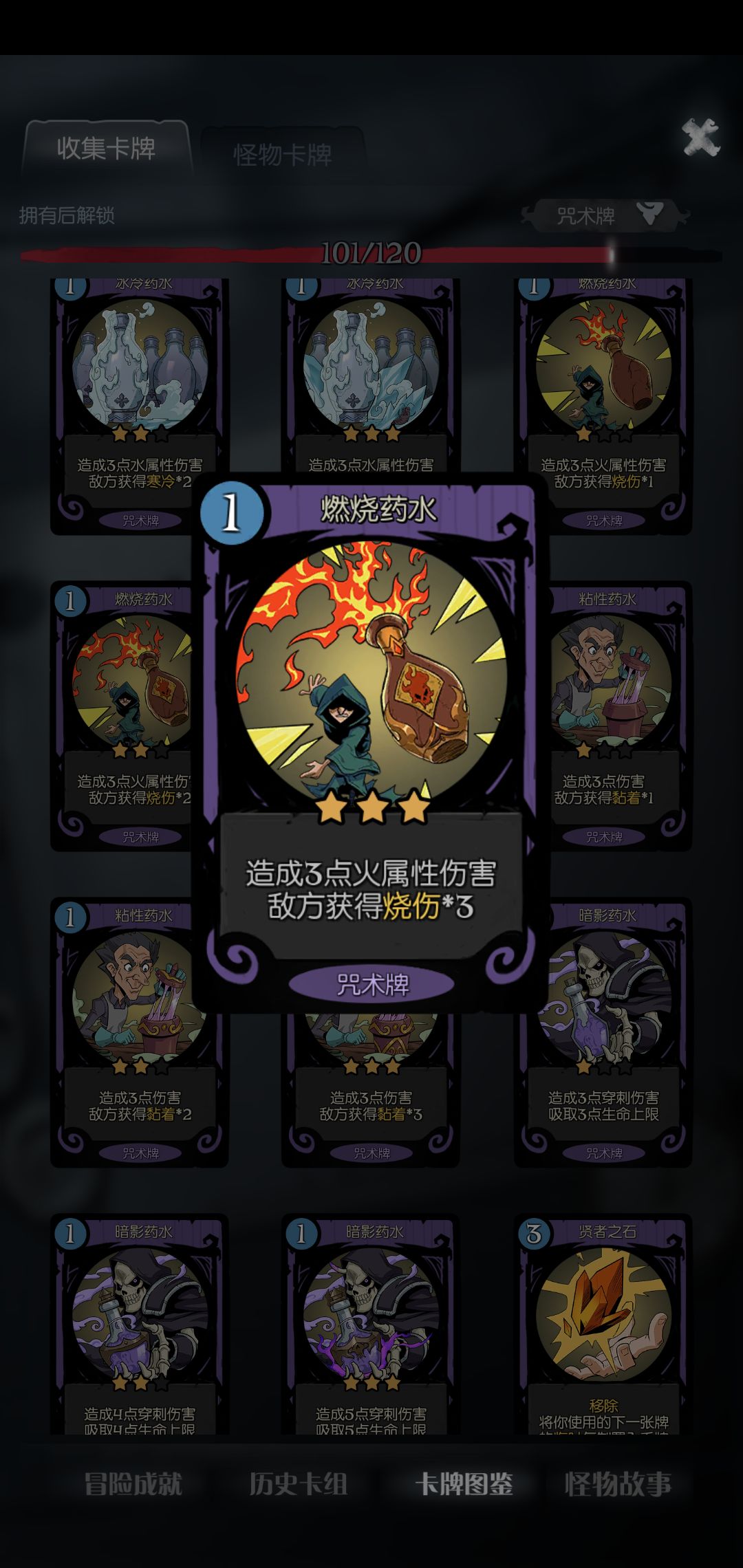 一点小建议:多注重粘性药水和燃烧药水。粘性buff有40%的几率使卡牌无效,烧伤buff叠到30多层轻松打出100+的伤害,这两个搭配一下完全吊打任何对手(当然,神父和神秘人会消除buff请注意)