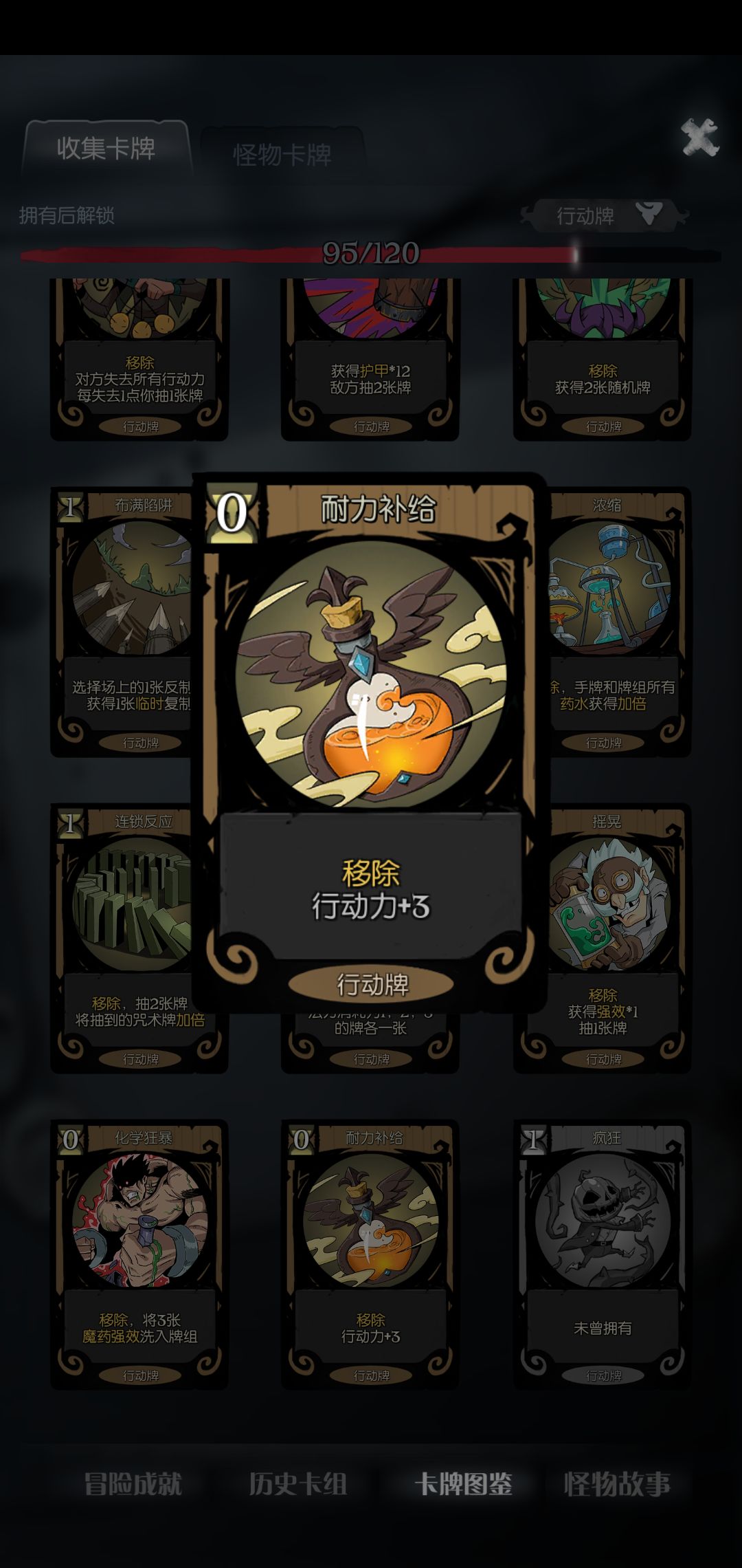 解决方案:看运气(划掉),升级奖励,祝福buff有备而来,猪皮背包(减2行动力太**了就没要,所以没有图)