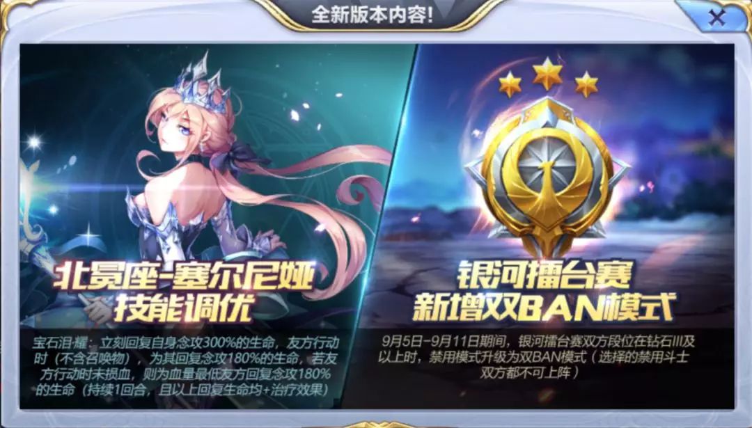 北冕座塞尔尼娅,是《圣斗士星矢(腾讯)》手游中,由车田老师新授权的原创角色,特点为根据队友行动回合来进行恢复生命,并可根据队友当前状态去转移加血量来做到不浪费,以及拥有限制对手复活的强力技能。在当前版本中北冕座·塞尔尼娅迎来了一波加强,今天我们就来分析一下新版塞尔尼娅的使用技巧。