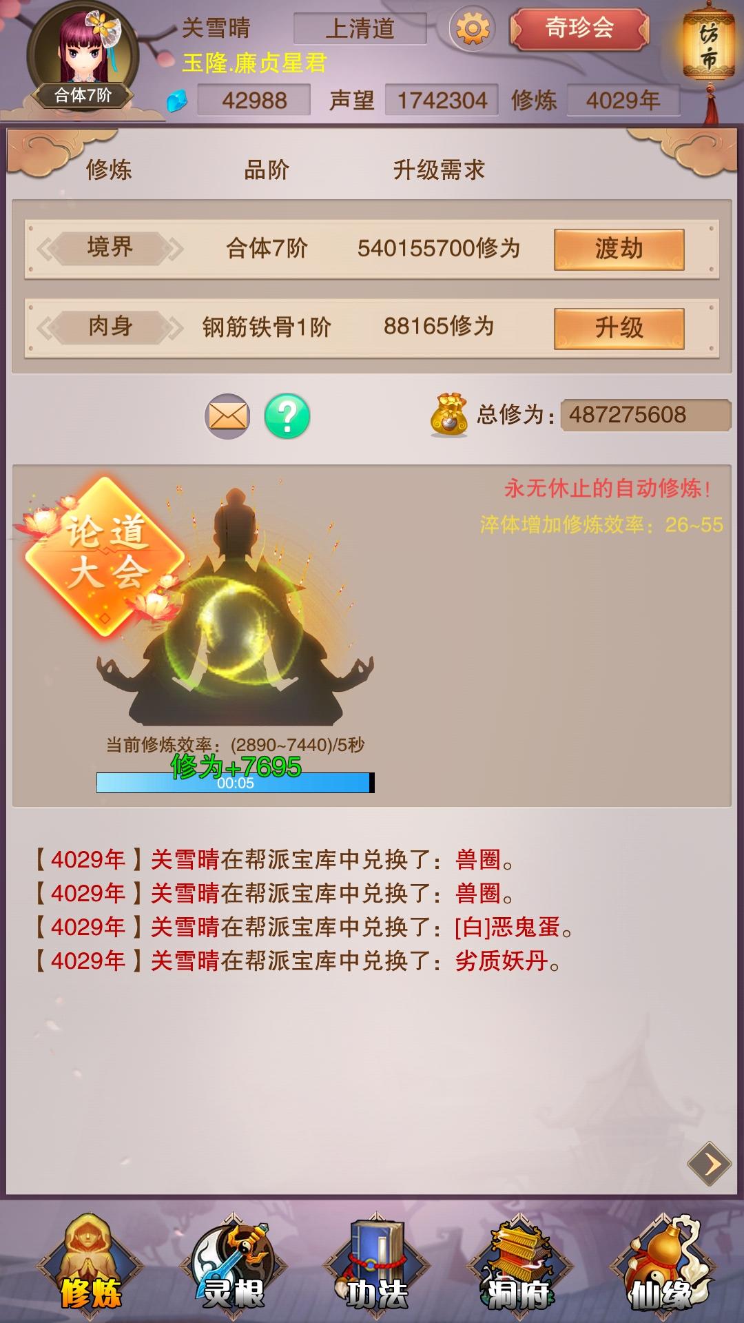 我在等一个时机,那就是洞虚,洞虚1刷完门派技能,带着我的狗去碰运气,运气很好,第二把打了个官位下来,血量碾压外加暴击闪避出的给力,这个时候我很放心,除了大佬,洞虚高阶攻击也破不了我的防,狗子暴击,血量充足,一般人谁也打不下来我,外加在天1当官,大佬都去上头了,这时候特别不希望洗地,我自己打下来的为什么要被洗。
