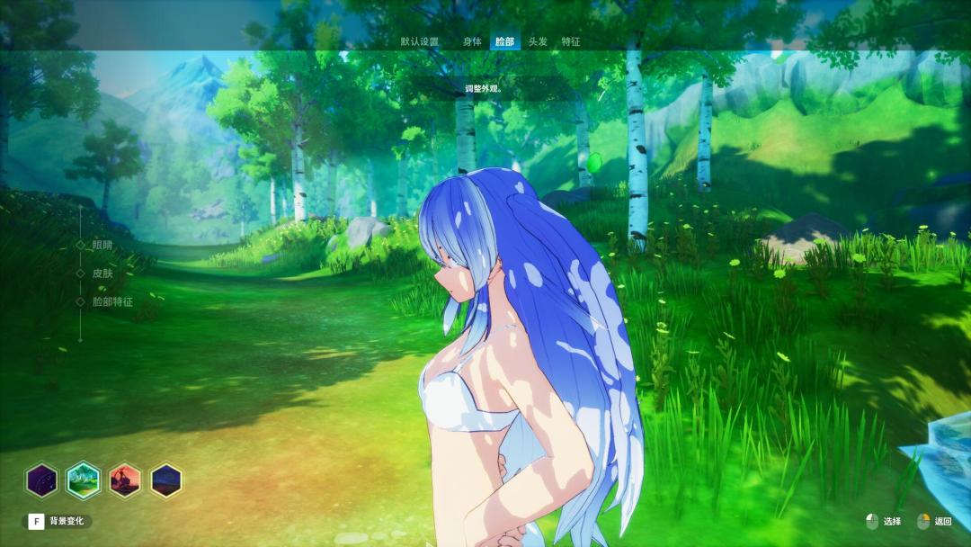 外貌:淡蓝紫色的长发,及腰,部分头发为雪白色。黄棕色瞳色,黑瞳孔。脸偏圆。略显青涩的胸围。