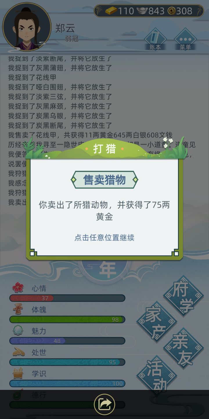 打猎出了异兽,本来以为是普通老虎,打死才发现是异兽用的是5金的弓,第一次没爆头,打了155,然后老虎直线冲我来了,第二箭乱射来了个爆头600+伤害直接秒,爽。