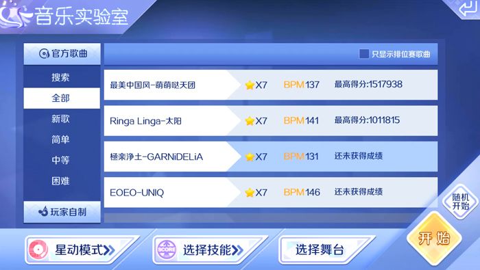 《极乐净土》歌曲的BPM速度为131,虽然在星动模式7星难度中不算快的,但是歌曲中密集的音符一点不会觉得这首歌有多慢。另外这首歌的音符非常丰富、不仅需要玩家的按键速度,同时还需要双手协调性,另外变轨音符还非常考验玩家的预判。喜欢这首歌的玩家,可以在达到11级解锁音乐实验室后,精准搜索选择挑战。