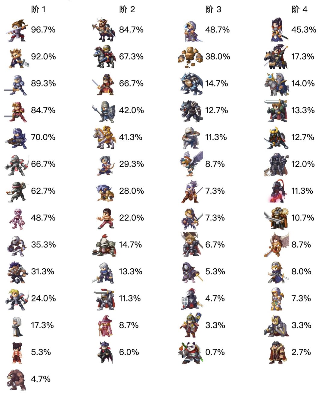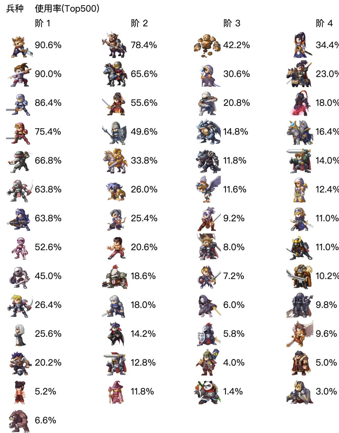 兵种使用率及英雄胜率