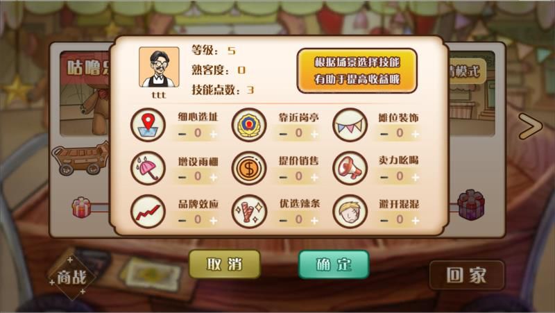 在游戏中,玩家经营一个小摊,根据自己的策略来实现盈利,不断地盈利,游戏才能不断向前走,推动着剧情解锁和物品解锁,等金币达到一定程度,玩家还能自己生产商品“辣条”,而且有很多种不同的辣条和生产秘诀哦~~并且还可以利用银行系统,具体的玩法就要看玩家自己如何去做了。不同的商品,可以带来不同的利润,商品的价格也不是固定的哦!