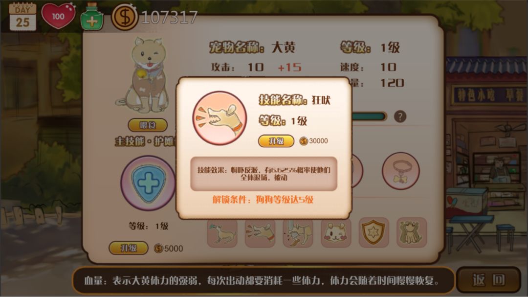就像人生不会一帆风顺,玩家摆摊的过程也不总是风平浪静的。在店铺中工作的过程中,玩家会随时遭遇小偷、混混等,影响了工作也影响了收益。此时,玩家就可以请来一个能干的帮手啦,游戏中开设的宠物系统可以让玩家养一条狗狗,看店护院它最在行。为狗狗提供食物并照顾它长大,在遭遇了小偷、混混时,玩家可以直接放狗来保卫自己的店铺,让坏人无法得逞。