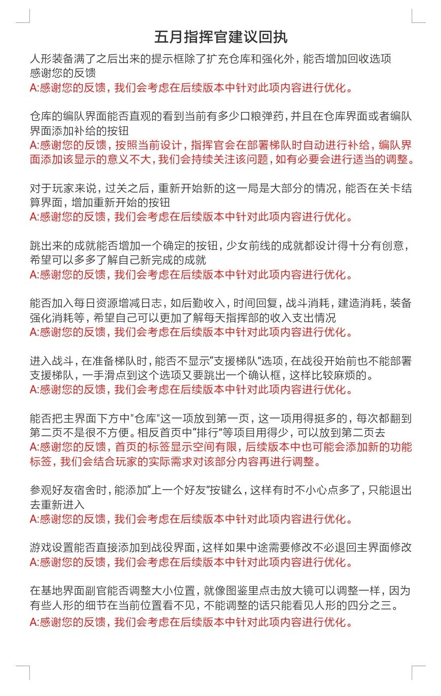五月指挥官建议回执