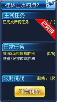 《钓鱼王者》在游钓中国第二关【桂林山水】也正式开启黑坑玩法,它在游戏里的别名——限时任务,即玩家在规定的时间内钓起要求鱼种,既可获得一定数量的钻石和金币。以下我们以【桂林山水钓点2】为列来讲讲游戏玩法。