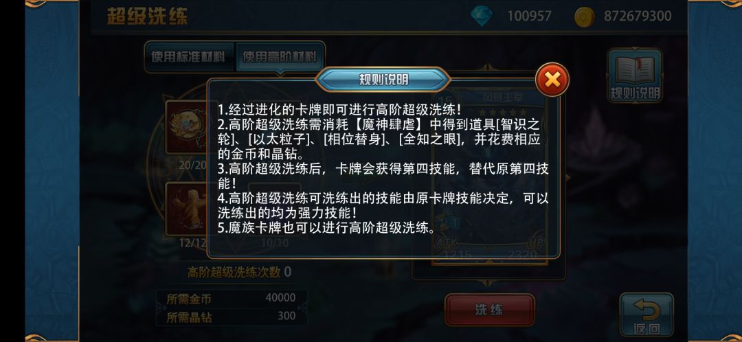 高阶超级洗练技能由原卡牌技能决定,可以洗出的均为强力技能。不屈没有给我洗成坚毅或者噬魔之体,洗了个完全不沾边的东西,废了材料和钻石还不如之前好。