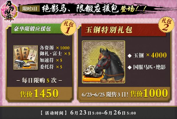 购买玉钢*4000即可获赠国服限定马匹绝影。