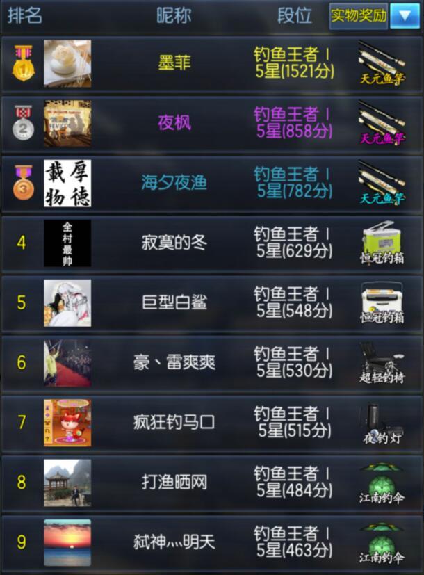 《钓鱼王者》S2排位赛实物奖励前来报到