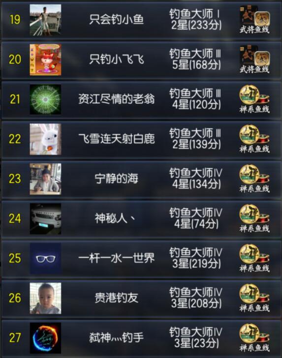 下面就让图图带大家看看S2赛季的最终榜单,看看有哪些钓友们获得我们即将邮寄出去的实物奖励吧!