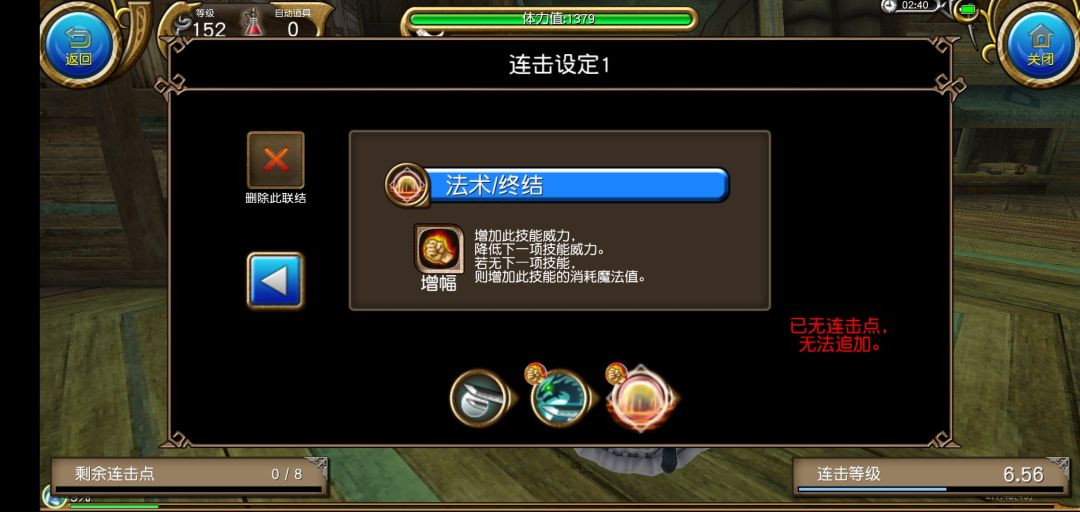 一蓝分身(没什么用的连击),暴毙以后起来快速进入状态。开局分身裸放,2000蓝的拔刀缺那三百蓝。常规打法:开局坦克开怪以后,上满三层神速,勇气,然后开分身普攻几下就开始疯狂炸蓝八项输出,boss快挂的时候斩铁碰瓷,画龙收尾√(不要开天流buff)极限打法:八项不需要像天流那样碰瓷以后就会重置层数,所以不要放过任何一个可以碰瓷的机会,十级斩铁追击伤害拥有300常数,15倍率的加成,10级四层天流是300常数,16倍率。所以碰瓷斩铁伤害是很高的,碰瓷以后可以5秒降防,这时候增幅八项的伤害还能获得提升√,破防以后画龙也是可以丢的,并不一定非要十层画龙才丢√(不要开天流buff),斩铁裸放,已经有冲击波增幅八项了,斩铁再增幅,容错率低。