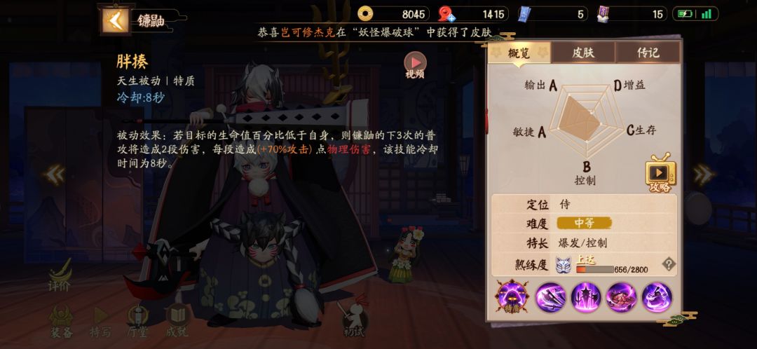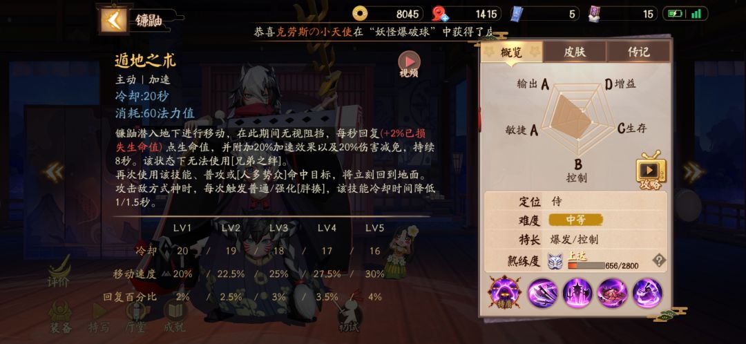 特质【胖揍】把镰鼬欺软怕硬的特点提现的淋漓尽致,自身生命值百分比高于对方便能够使普攻变成2*70%的伤害,持续3次普通攻击。(平a的关键因素,普通攻击可以触发暴击效果)。