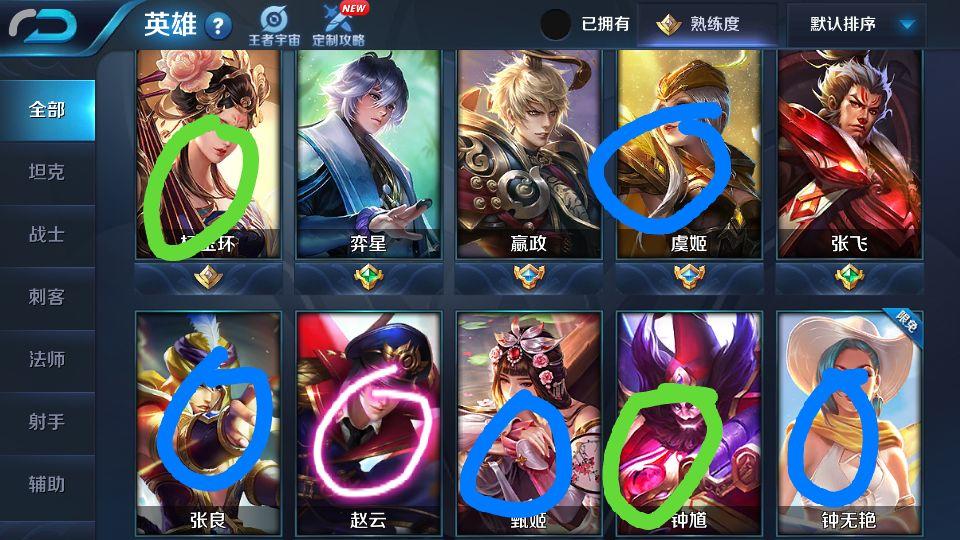 蓝色代表游戏内活动免费获得的皮肤, 绿色代表皮肤碎片换的, 红色代表钱买的, 白色代表体验卡 橙色代表活动的六元皮肤, 紫色代表VIP送的皮肤 ,金色代表多出来的积分抽奖正巧获得的皮肤 。