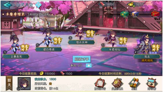 进入后进行分组,可从5个对手中击败3位,通过挑战胜利增加积分,被别人挑战胜利就会被扣分,当你把三位对手挑战完的时候,可以选择刷新跟换对手,有五次的免费刷新对手次数。