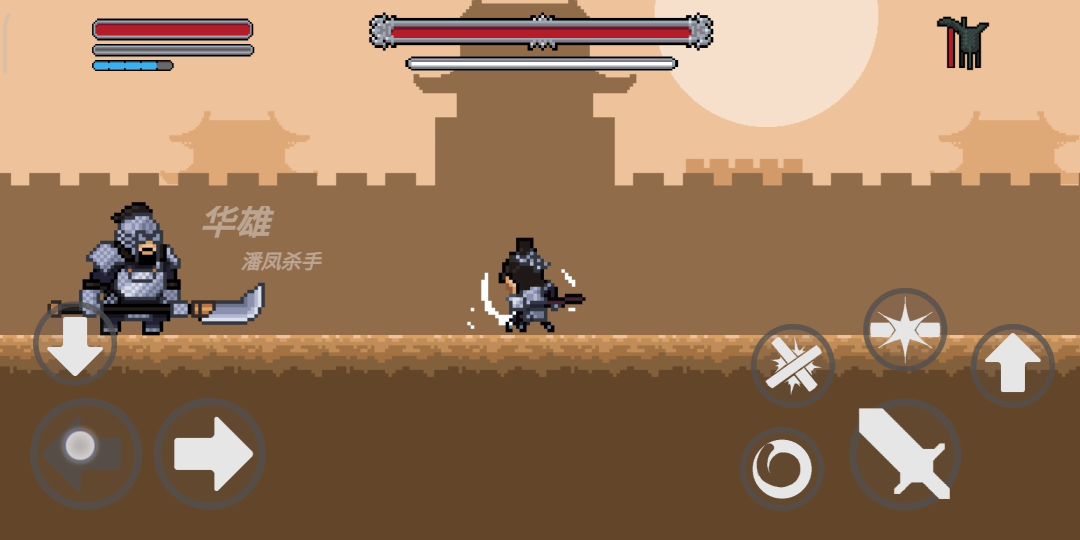 ①主角灵车漂移,仅左右方向键和跳跃键可用,需要跳起来给boss砍一刀才能正常打铁(bug可100%复现,触发条件:开始新游戏让华雄砍死一次然后回到主界面再点开始新游戏,不等诸葛先生说完就去挑战华雄,而且同时会导致血条不回复+关卡文字提示不消失)