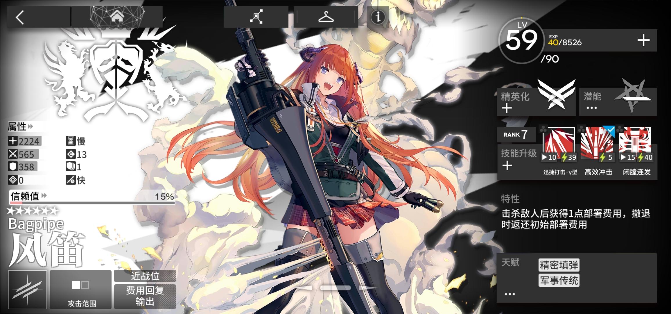 那么风笛强归强,她好用吗?作为一个击杀回费先锋,不潜13费的确是蛮贵的,考虑只带推王和风笛的话还是有点吃力,虽然有二天赋对所有先锋加技力,但是很多时候可能还是不如红豆这种便宜的先锋。但是,这种情况只存在于低难度本。一旦难度变高,如危机合约,低星角色上限不足的问题就立马凸显出来,这种时候,作为六星的风笛明显更具有优势。所以,对于新人玩家来说,这个角色不是很关键,对前期帮助可能不如德克萨斯。但是对于发育到后期,有余力的人来说,风笛还是值得入手的。