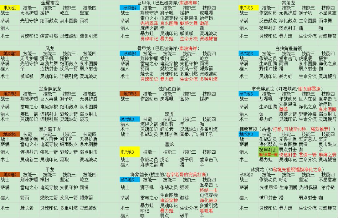 更新多多里雪山猛犸、白牦牛王、月风龙,冰狮龙与之前相同(要是发现术士被吼能量了,就换印记分流鞭笞暴力蛙)