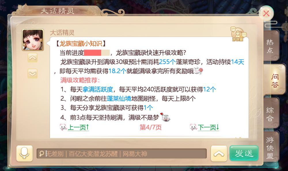 根据大话精灵的“龙族宝藏小知识”的描述,将宝藏录升至满级总共需要消耗255个“蓬莱奇珍”,需要平均每天拿18.2个才能满级,确实有一些难度。但其实,许多丰厚的奖励都集中在20、25级,玩家们可以量力而行,拿到自己最满意的奖励。