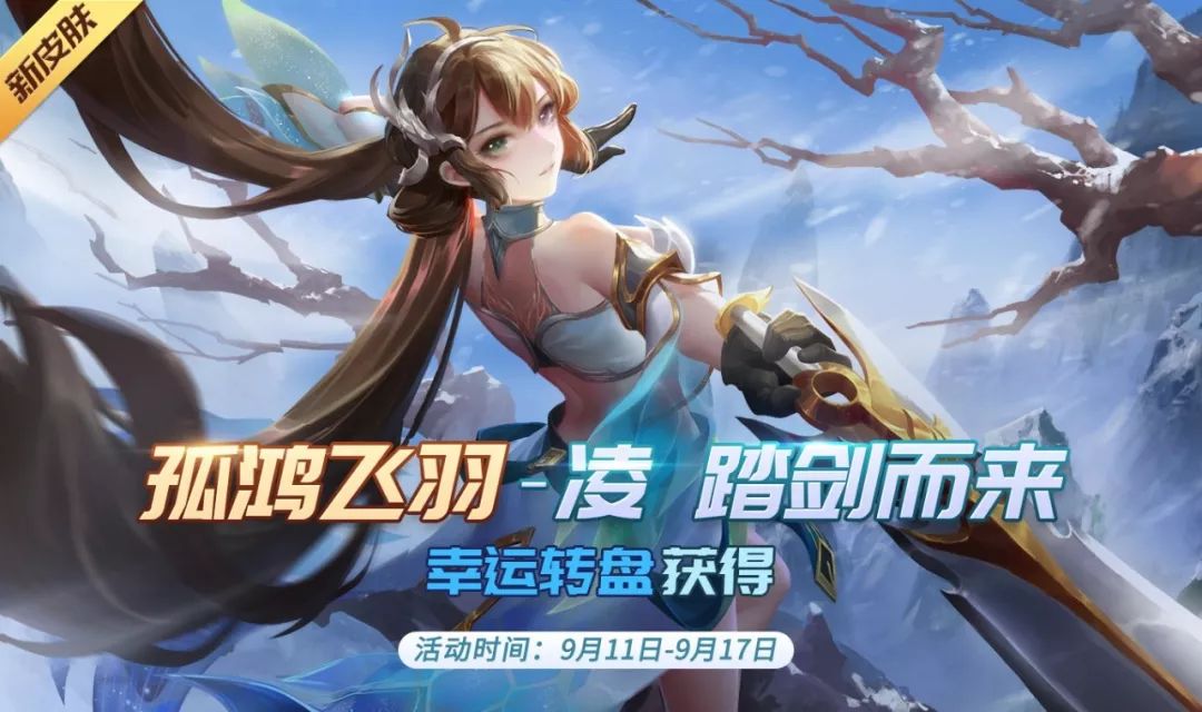 5. 幸运转盘:9月11日-9月17日,新皮肤孤鸿飞羽-凌可在幸运转盘中使用狂欢券抽奖获得,还可获得天外飞仙、无量战尊等皮肤。