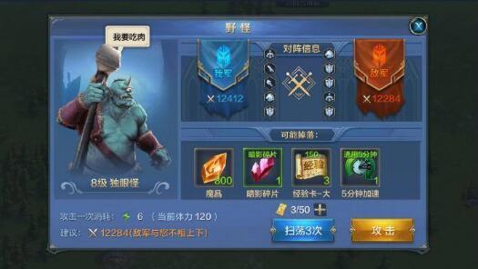 蓝色数值指的是体力值,显示的是目前的体力值,可用于攻打野外的野怪,体力可以贵族商城购买,也可以等待时间自动回复,体力值上限是120,如果不使用就不会增加,所以有体力的时候尽可能多去打怪,既可以提升英雄的经验,又可以获得意想不到的收获哦~