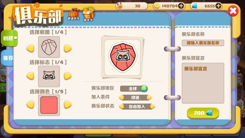 一:创建自己的俱乐部(等级达到5级+填写创建信息+花费200钻石)