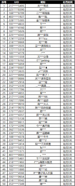 在游戏客服平台收集整理玩家的举报,并通过游戏最新的安全机制进行了审查核实。我们发现部分御灵师通过非法游戏的行为破坏游戏环境,严重影响了大家的游戏体验。核实名单由游戏安全团队进行了封禁处罚。为表明我们打击非法游戏行为的决心,特此将部分举报查实处罚名单进行公示。