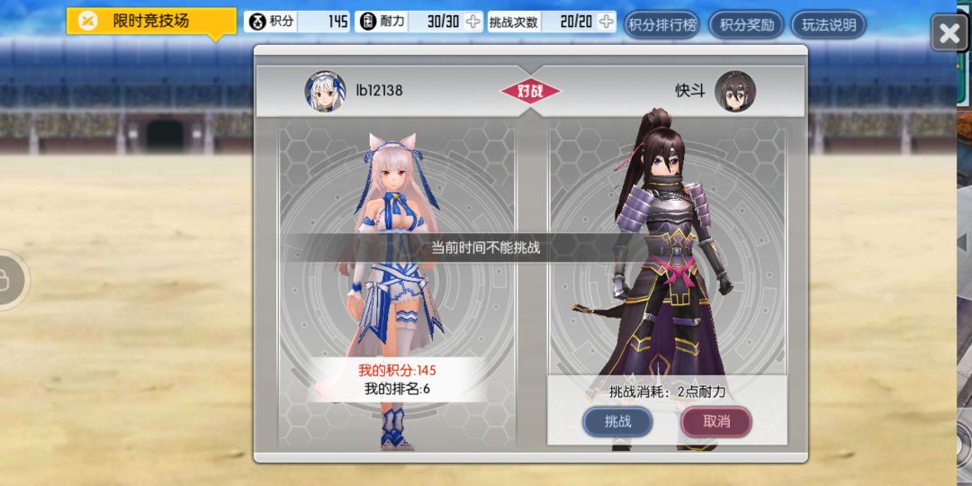 今天早上先用三百钻买了限时竞技场十次次数,然后就一直显示当前时间无法挑战,麻烦把活动结束写清楚点好吗,十号结束到底是时候0点结束还是24点结束,活动结束了为什么还能买挑战次数,好不容易回次游就这体验