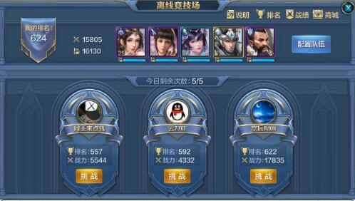在这里有来自不同国家的主君,每天有5次挑战其他主君的机会,胜利则排名对换,失败则排名不变(ps:在竞技场是不消耗兵力的,所以主君放心,不用担心损耗),不过无论是成功,还是失败,都会扣除次数;