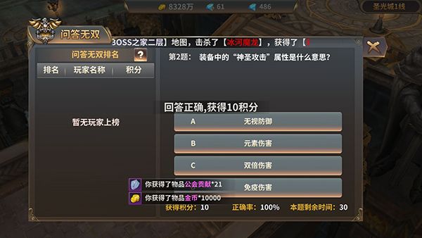 题目分为10道,单选题,答对加分,答错不得分。每天晚上22:00会按照积分排名情况发放奖励。