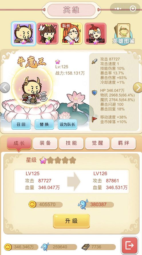 升级和升星是游戏里最最最重要的提升战力的方式。