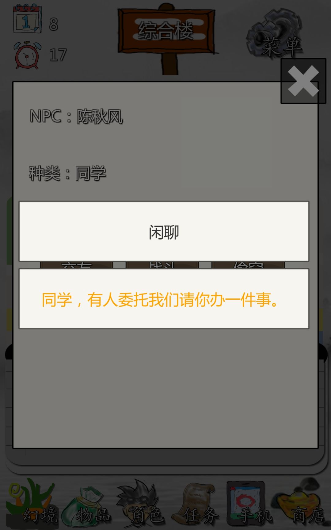 主线到了陈秋风那里过不去了,点了对话没有反应