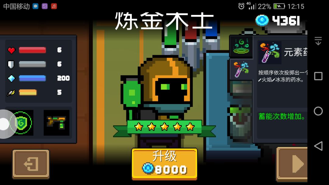 不论是初始还是升级,子弹都是元气里少有的滞留型,这种子弹范围大,但攻击距离大于近战小于远程。 升级与初始比较 虽然面板一样但个人建议升级,八千蓝币,增加3发子弹(6点伤害)还是比较值的,攻击范围也增大了,清怪能力稍有加强,怪物中毒的概率也会提高。