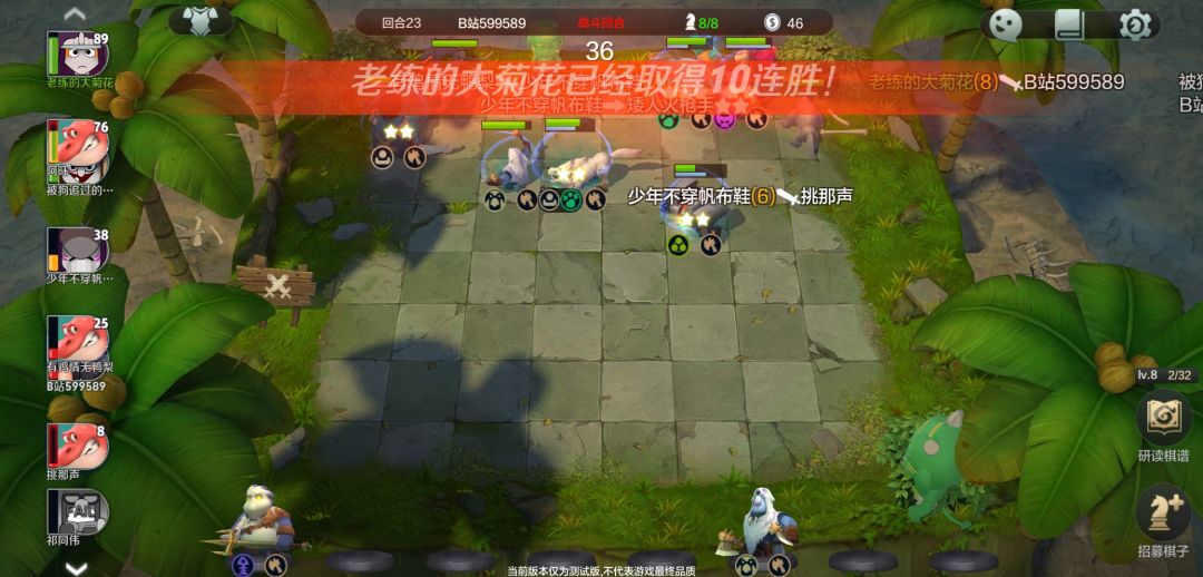 最终升到八级形成前排6战士加美杜莎加NEC的阵容,8级成型的阵容特别快,钱的话可以留三十左右剩下都去找三星将。这时候我们的阵容就成型了,但我们的阵容一旦成型,就意味着我们的统治力会不断减弱,这时候如果还不能终结比赛的话被翻盘也是有可能的,大家记住一个时间点,33回合,33回合之前在我们强势的时候一定要尽可能多的击杀对手,35回合的野怪是一只大黑龙,一般会掉落比较高品质的装备,后期卡组很有可能就会在35回合之后形成反扑,但如果这时候还没赢下比赛,我们还可以通过血量优势来吃鸡,这时候就考验玩家的阵型理解了,一定要尽量减少掉血,至少要撑过4回合还要保持比第二名血量要多,这时候我们的吃鸡机会就来了,本局对战我的对手在35回合抽到了3星龙骑士,几波反扑把我从60血打到20血,但他只有4血,而第40回合的野怪除了纯控制阵容没有人打的过,所以他挺不过这一波了,而我卖了血还剩5血,最终惊险吃鸡,还有一局37回合就结束了几乎是满血吃鸡。